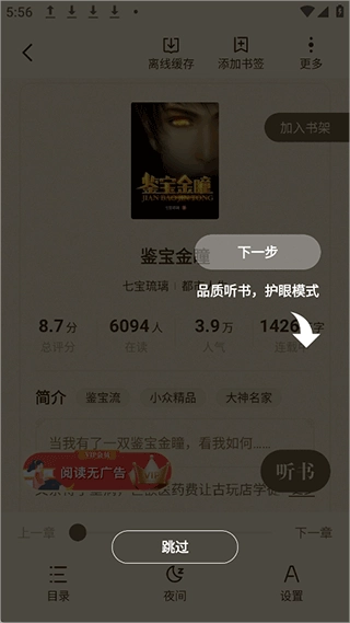 我们运用分章节压缩技术,单本书的缓存大小能缩减60%,还可支持500章内容的批量处理,即便在地铁、航班这类弱网场景下,也能实现流畅阅读。