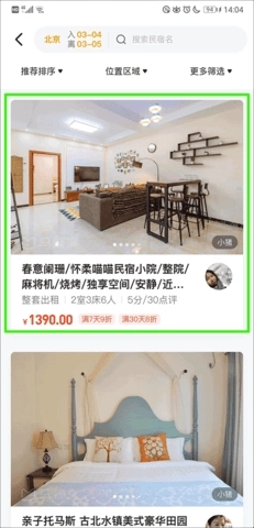 然后在酒店或民宿的选择界面里,挑选并点击你觉得合适的酒店或民宿。