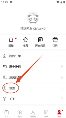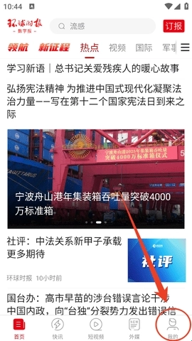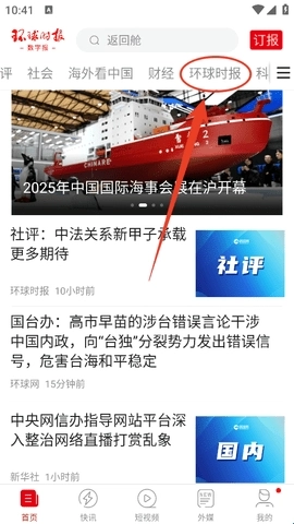 打开软件后,在首页的导航栏中找到“环球时报”选项,点击该选项即可进入。