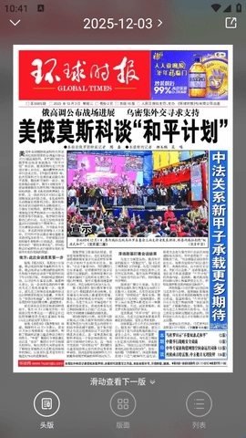 之后你就能看到环球时报的电子版,直接就能开始阅读报纸了。