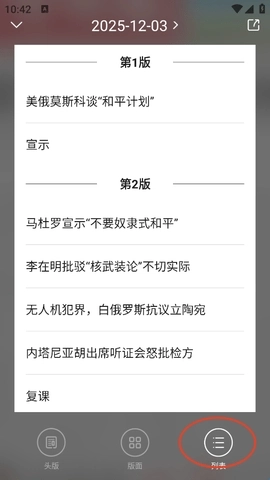 点击“列表”还能查看报纸所有版面,以及新闻标题。