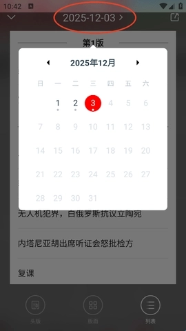 点击上方的时间,可以找到往期的报纸。