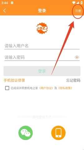 进入注册页面的方式是点击机电之家网站右上角的免费注册图标。