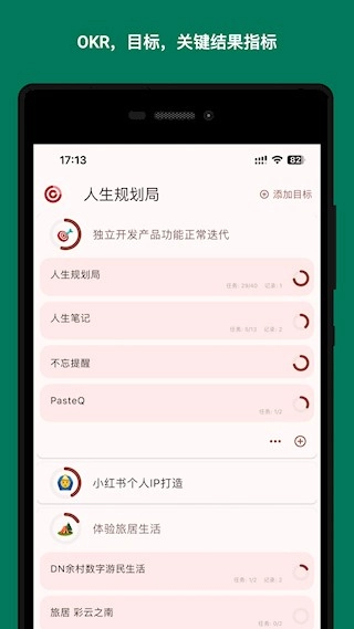 1、目标量化拆解:确立人生目标后,可设定若干能衡量的关键成果,在每个成果下再细化拆解具体任务,让实现梦想的路径清晰展现。
