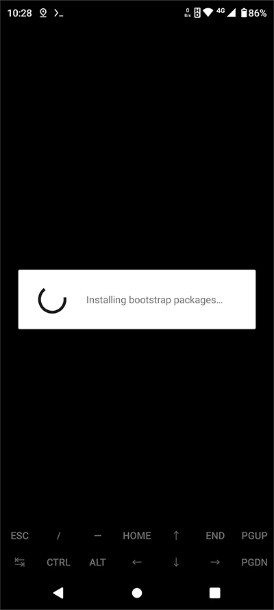 第一次使用Termux时,要等“Installing bootstrap packages(安装引导程序包)”这个过程完成,就像下面图片显示的那样。