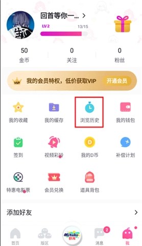 1、打开应用后,进入个人中心页面,在该页面能够找到“浏览历史”选项。