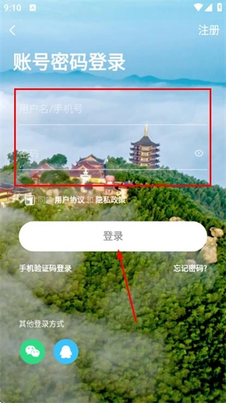 3、进入密码登录页面,依次填写手机号与密码,勾选相关协议后,点击登录按钮,即可完成账号登录流程。
