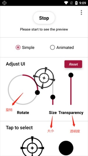 3、在“tap to select”功能中,可更换准星的外观与颜色。