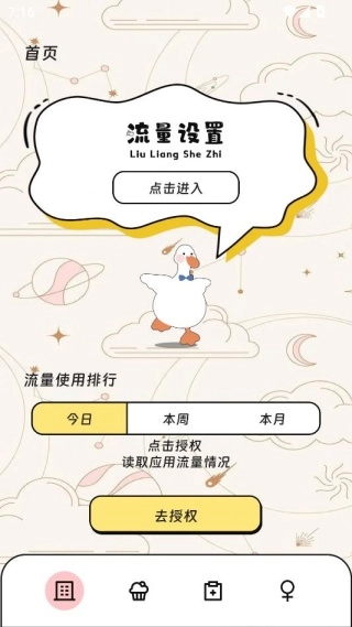 奕盛流量宝是一款整合了流量监控与生活服务功能的实用工具,能够精准记录用户每日的流量使用情况并及时发出提醒,有效防止流量超额。除了核心的流量管理功能外,软件还加入了健康饮水提醒、休闲小游戏等趣味模块,在保证实用性的同时增添了娱乐性,让用户的移动端使用体验更加丰富多元。