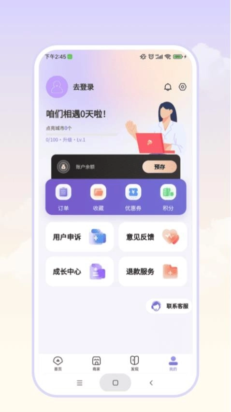 在个人中心页面,您可以便捷查看订单、收藏内容、优惠券、积分以及账户余额等各类信息。