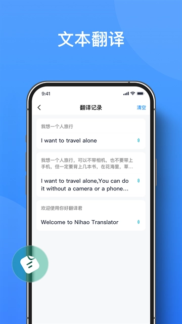 1、文本翻译只需输入文字就能实时生成译文,语音翻译在说话过程中即可完成识别与翻译,操作十分高效。