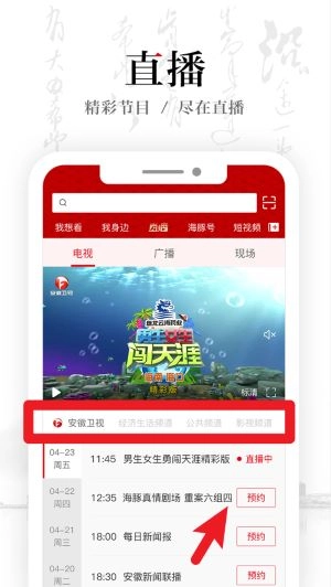 3、直播页面会呈现安徽卫视当前正在播出以及即将上线的节目内容,用户可以实时观看节目,还能提前预约那些不容错过的精彩节目。