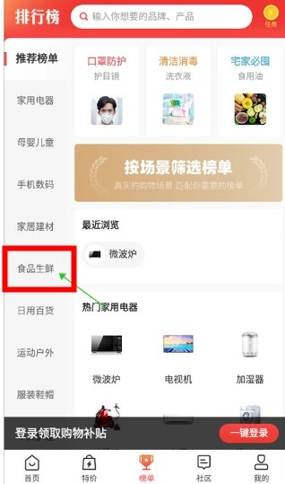 1.打开软件后,可按品类对榜单进行筛选,若想查询辣条品牌,选择食品生鲜分类即可,该操作简单便捷,容易掌握。