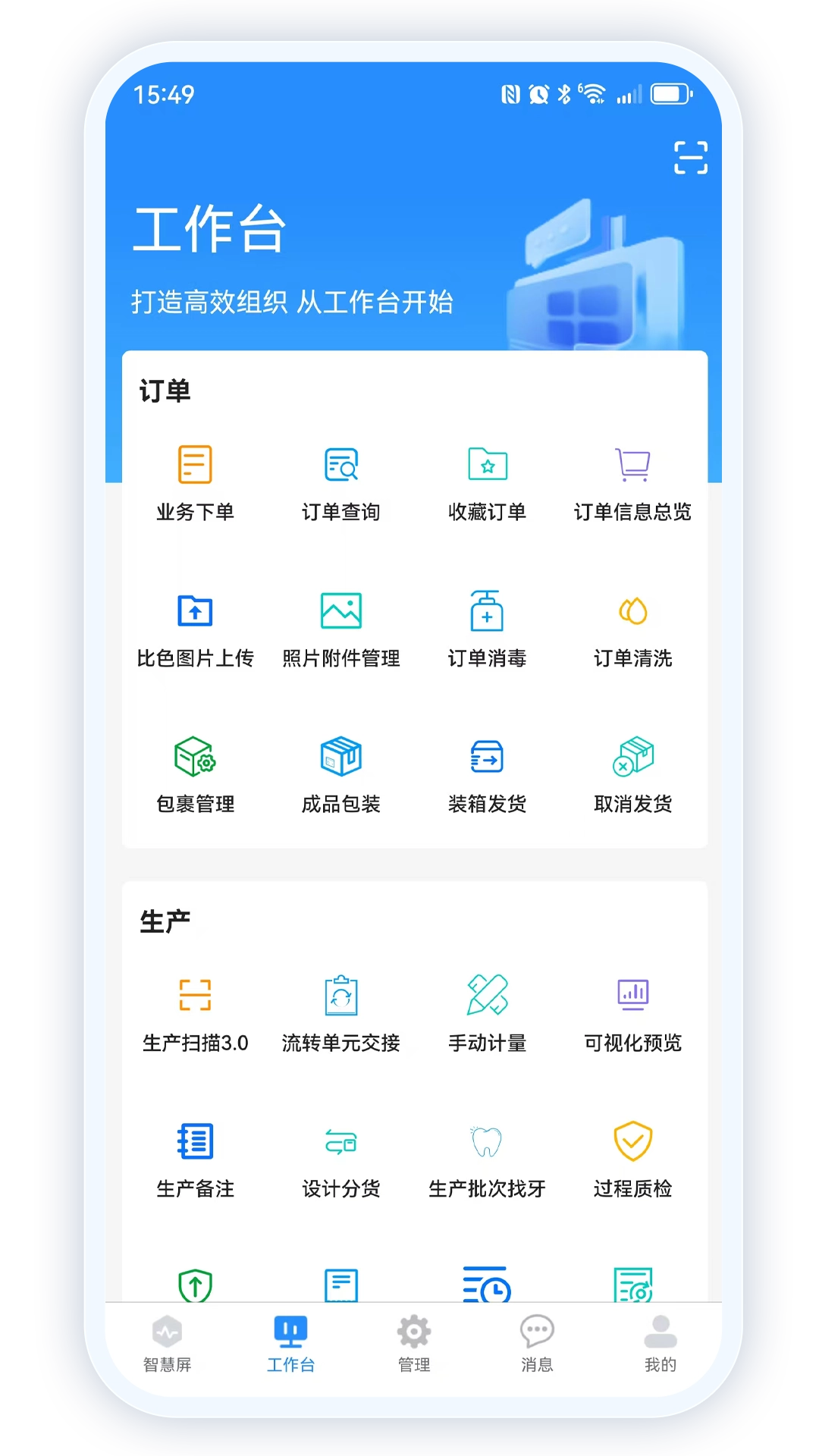 3、轻松开启移动高效办公模式,构建掌上工作台,让您能够随时随地处理订单、报工等各类事务,彻底打破时空带来的限制。