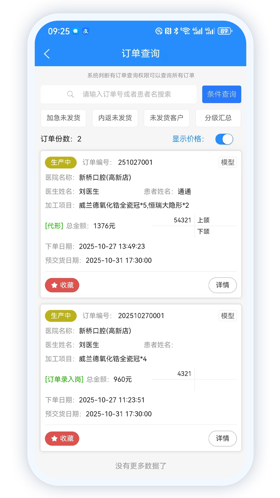 2、平台实现全流程业务覆盖,涵盖业务下单、生产流转至质检发货等环节,一站式满足义齿工厂的管理需求。