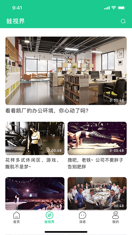2、可以在线查看各种短视频动态,通过视频展示公司环境和员工动态;