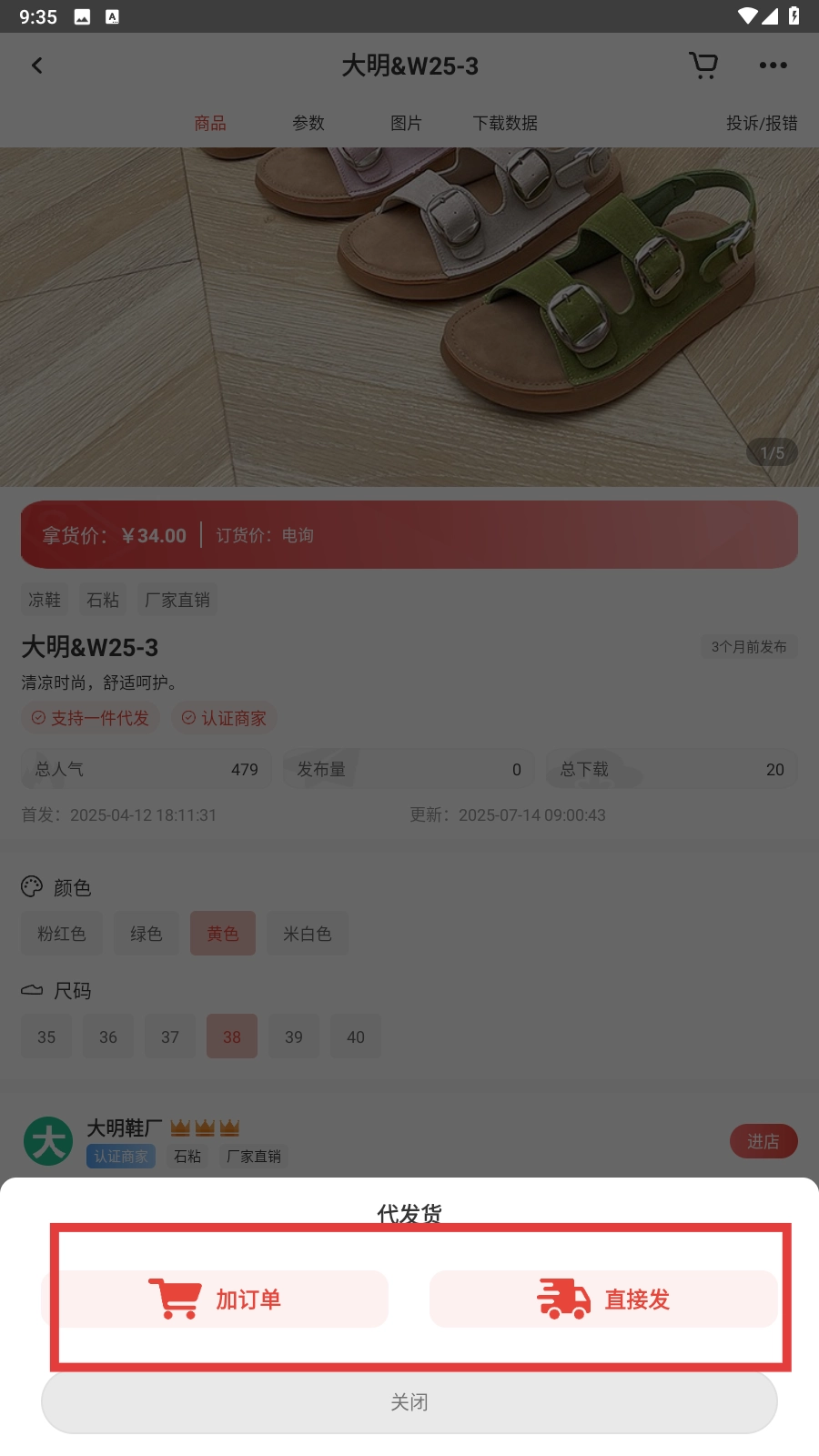 4、挑选好商品后,点击【代发货】弹窗里的【加订单】或者【直接发】选项,即可完成下单操作。
