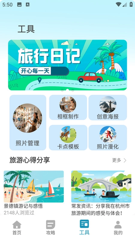 3、用户可以上传个人旅行游记,通过图文结合的方式呈现旅行体验,同时也能从中得到旅行灵感。