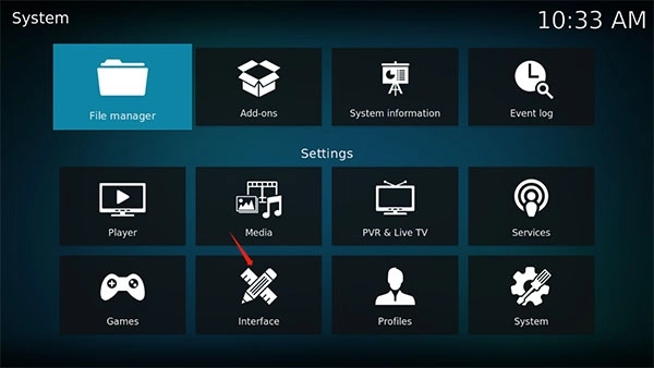 1. 打开Kodi播放器手机汉化版,进入主界面后,点击左上方中间位置的齿轮图标。