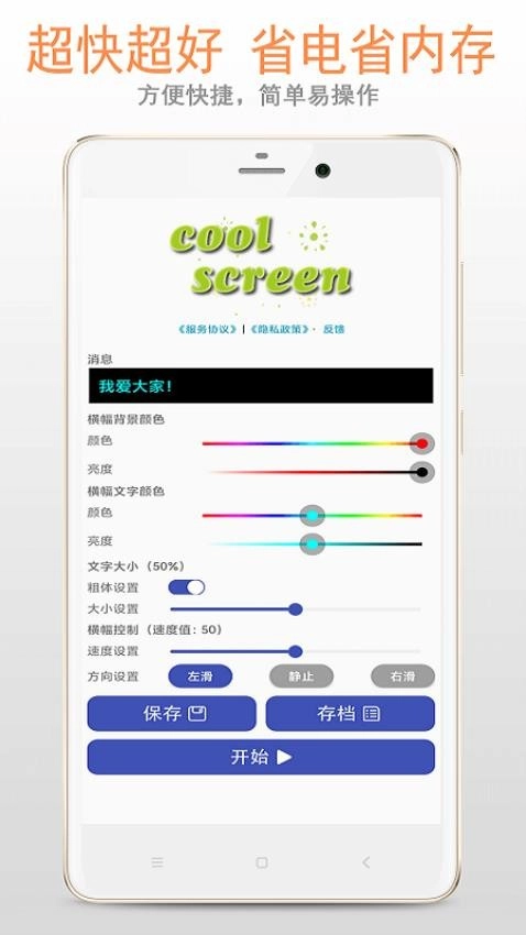 LED是一款能把手机变成LED显示设备的软件,借助它你可以用手机屏幕展示各类自定义文字内容。比如在火车站或机场接人、去演唱会或电竞比赛应援时,就能根据需求自由编辑要展示的文字,通过手机屏幕大胆呈现出来,让你更显潮流、时尚与个性。LED最新版本支持丰富的自定义设置,你可以调整文字大小、滚动速度、背景颜色、文字颜色等,按照自己的喜好打造不同文字效果,进行个性搭配,有需要的用户不妨来试试!