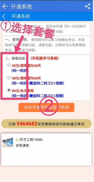 二、输入系统码后,挑选你想开通的套餐,接着点击开通手机技巧系统