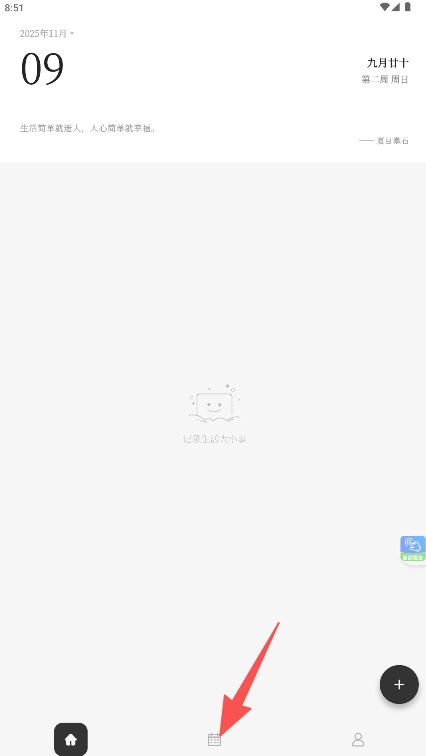 1、在应用首页底部的导航栏中点击“日历”图标,即可进入日历页面。