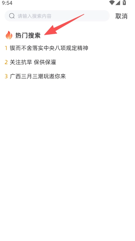 1、启动软件,浏览热门搜索内容,选定话题后,进入资讯列表页面。