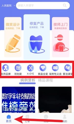 2、登录成功后,您可以在首页选择微笑设计、修复产品或技师上门等主要服务项目,快速完成下单操作。