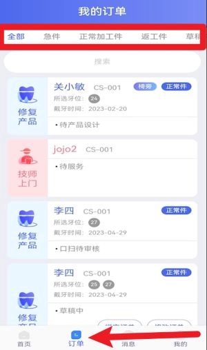3、在订单页面中,能够查看所有订单以及分类明细,例如急件、正常加工、返工单和草稿订单等信息。