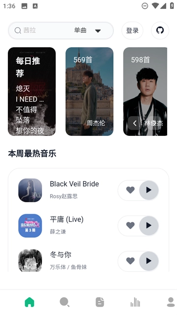 1、支持通过歌名、歌手、歌词等多维度精准搜索,只需输入关键词,就能在海量曲库中快速定位到想听的歌曲。