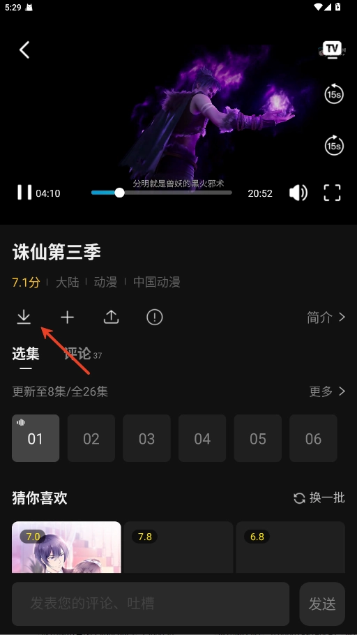 4.点击“”图标,剧集离线观看。