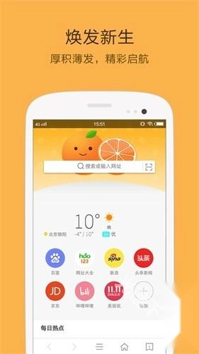 桔子浏览器手机版界面清爽、UI美观,各个功能板块清晰呈现,用户能在软件上搜索各类内容,享受高效流畅的浏览服务。软件响应速度极快,且安全稳定,可助力用户秒开各类网页,轻松获取丰富信息。用户还能为这款软件更换可爱皮肤,让浏览器兼具实用与美观,上网就是这么简单!