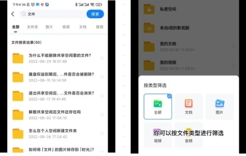 3. 个人文件及照片具备AI智能分类功能,点击【搜索】输入关键词,或按【文件类型】筛选,即可实现快速查找。