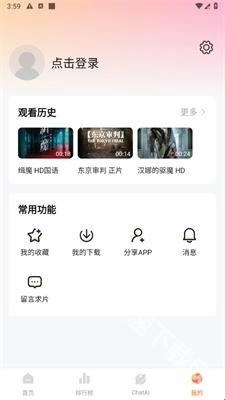 1、打开小柿子影视软件,点击底部导航栏的【我的】选项,即可进入个人主页。