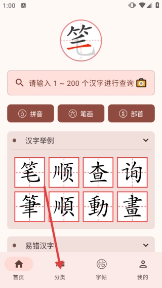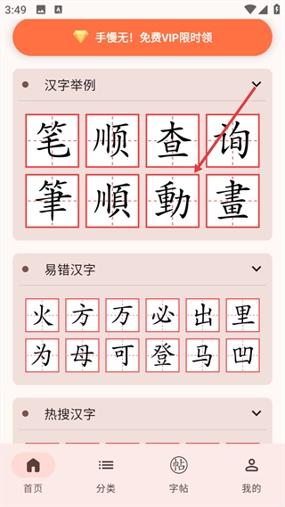 1、进入首页,选择目标汉字。
