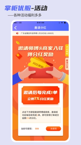 掌柜优服这款软件,不仅能为用户和师傅提供多样化服务,还十分重视保障师傅的权益,同时致力于提升用户的使用体验。师傅只需完成注册,就能领取一份大礼包;缴纳保证金的师傅,更能享受到专属特权。平台还为师傅配备了自由报价和抢单的功能,让师傅们可以更灵活地挑选合适的订单。