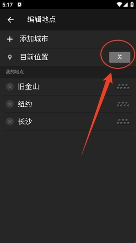 3、在这里将“目前位置”后面这个开关打开就行了。