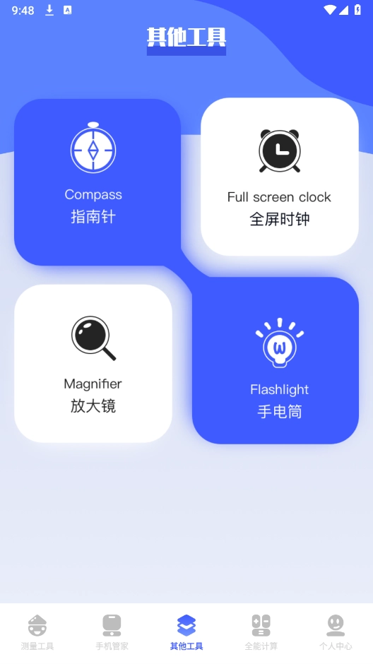 进入软件后,能看到丰富的工具分类,像测量工具、全能计算工具,还有各类实用的小功能。