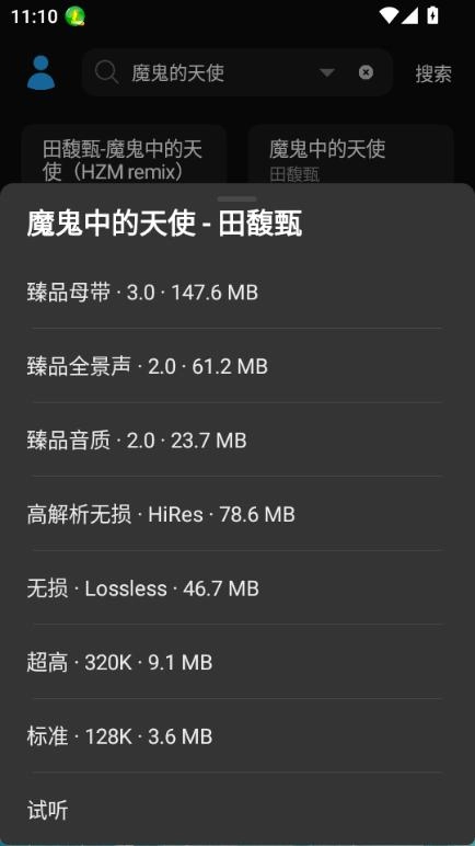 2、找到想要播放的歌曲,点击进入其播放详情页面,该页面会呈现出标准、高清、无损等不同音质的选择项。