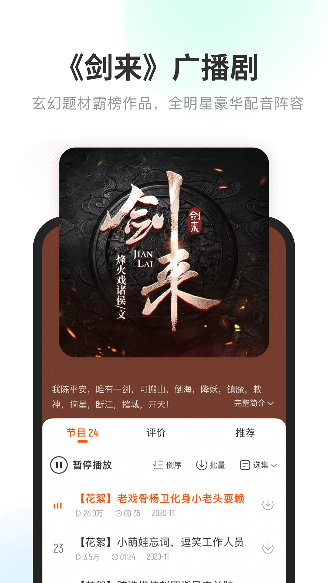 - 可在网络不佳时收听,节省流量。