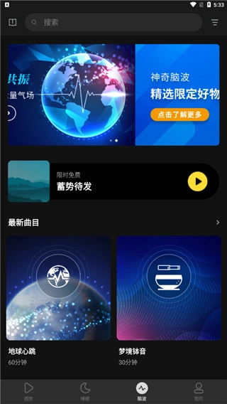进入软件后,首页呈现了丰富多样的脑波音乐推荐,用户能够根据自身喜好来挑选。