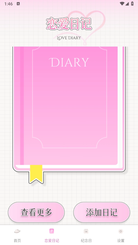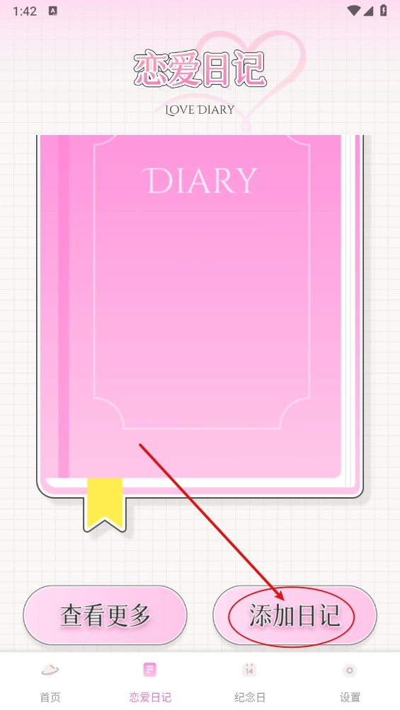 6、进入“恋爱日记”后点击添加日记,就能在其中记录恋爱日常。