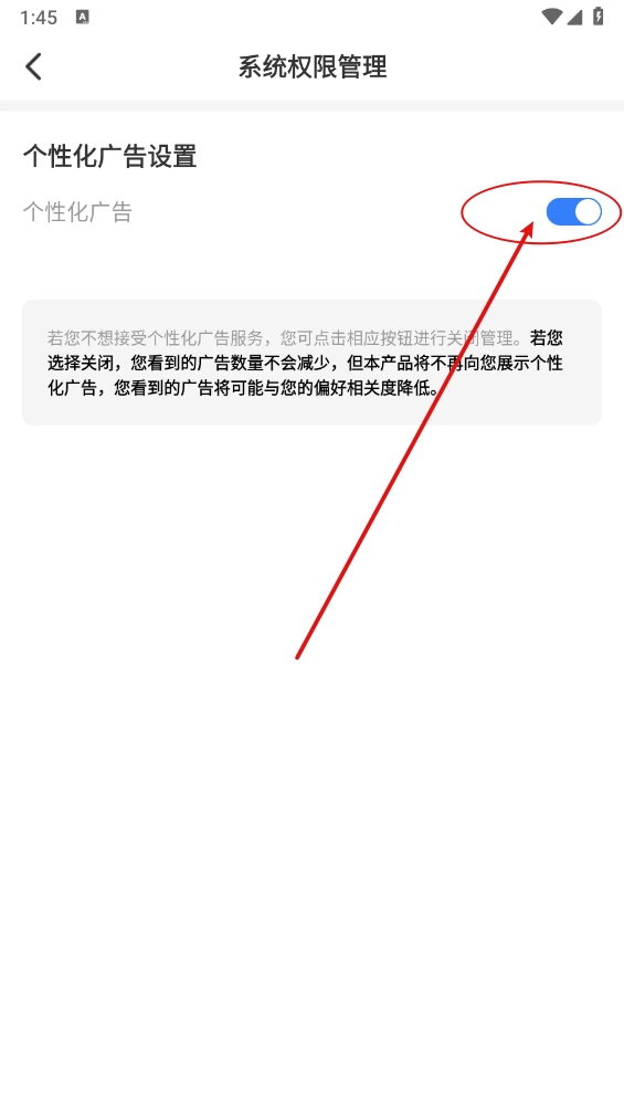 3、最后关闭"个性化广告"的开关即可。