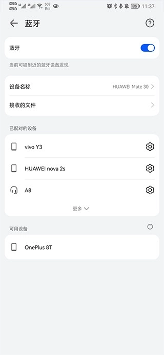 2、点击开启蓝牙功能,接着进入蓝牙设置界面,把蓝牙设备连接上
