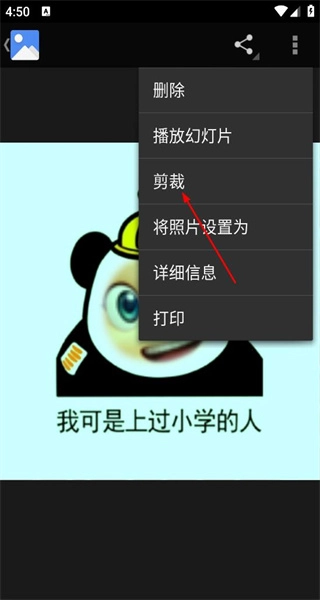 3、点击功能菜单按钮后,会展开一个包含删除、裁剪等选项的列表,选择其中的裁剪选项,即可进入图片裁剪的编辑界面。