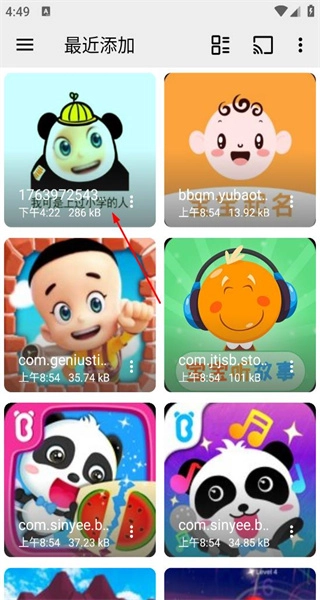 打开软件进入最近添加页面后,能看到多款图片缩略图,找到并点击带有“我可是上过小学的人”文字的表情图。