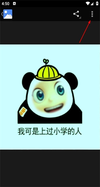 在图片预览界面中,待表情图完整显示后,找到右上角的功能菜单按钮并点击,以便展开操作选项列表。