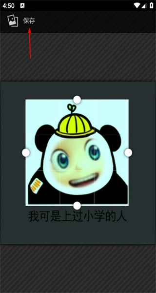 4、进入图片裁剪界面后,调整裁剪区域的尺寸与位置,点击左上角的保存按钮,即可完成该表情图的裁剪操作。