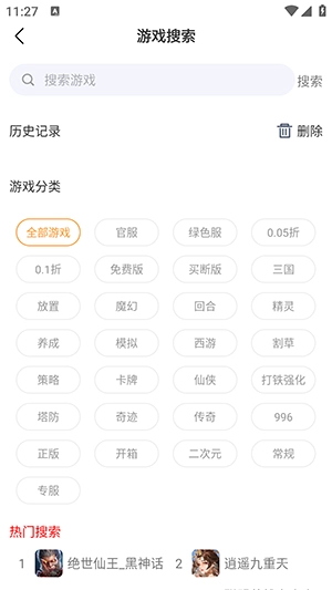进入软件后,点击搜索框,输入想要查找的游戏类型或游戏名称。