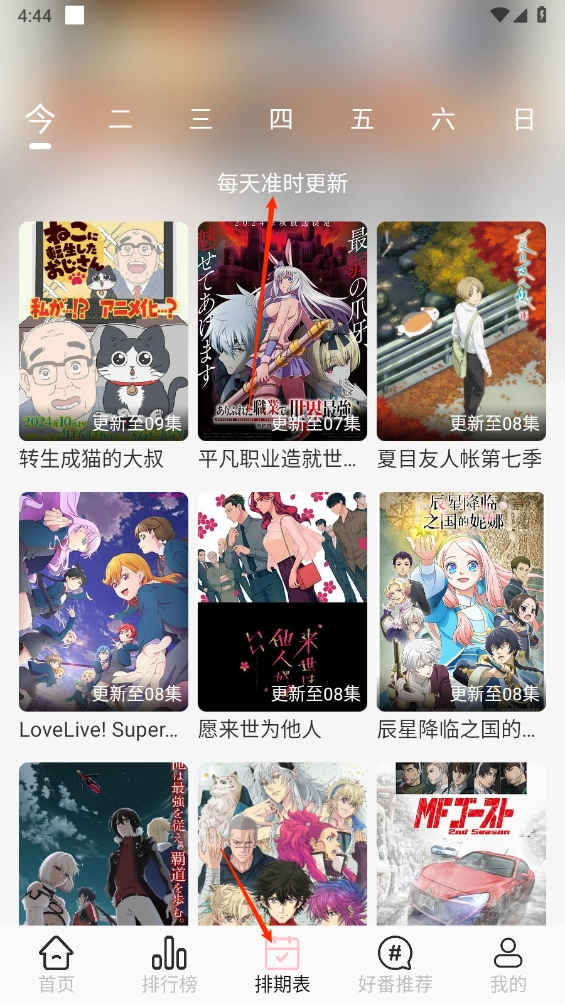 6、进入“排期表”后,我们会每天准备好相应的剧集更新,供你观看。